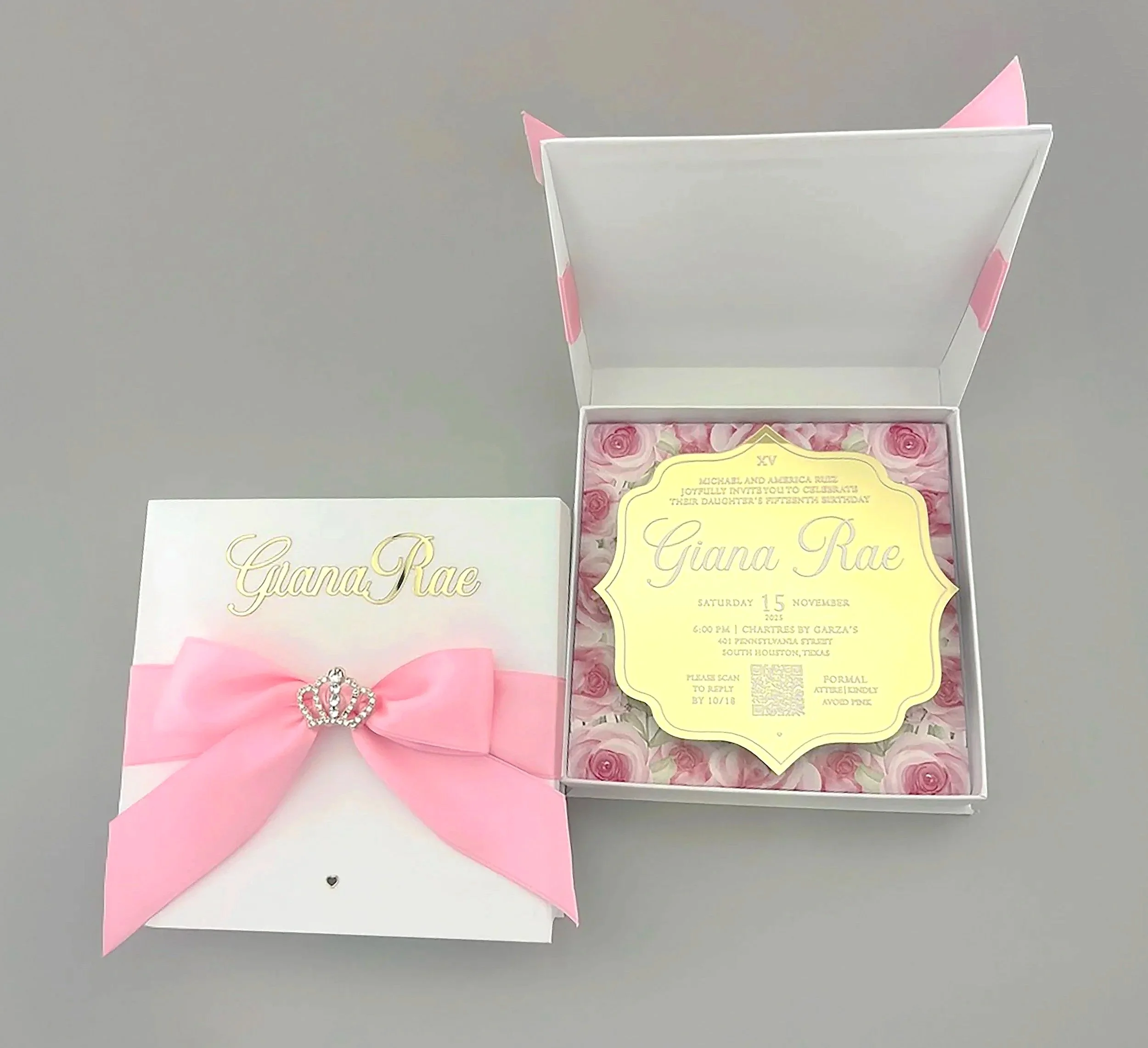 Amablemente les pedimos no vestir de color rosa, ya que este color está reservado para nuestra festejada de honor